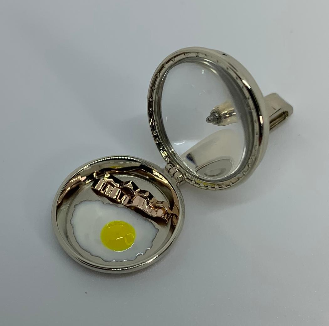 The pendant also includes a stunning optic quartz glass lid that opens to reveal the delightful breakfast inside. Its unique fork-shaped bail adds a playful twist while ensuring it pairs beautifully with any chain.