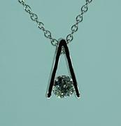 This pendant is made in 14k white gold and has a tension set 0.48ct G-H SI1 diamond that sits between two gold flat wires. It has a dedicated 18 inch rolo chain. This pendant can also be custom made with any accent stone for a one of-a-kind gift
