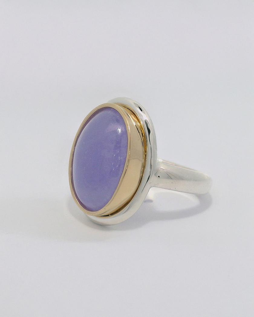 Sterling Silver & 14kt Yellow Gold Purple Jade Ring