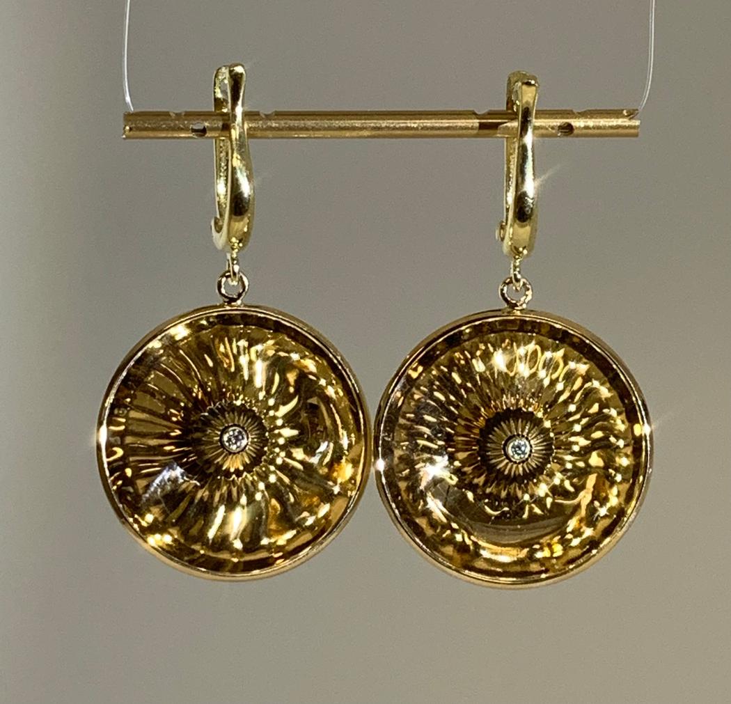 These one of a kind that have been made by Alex Maryaskin, made in a 14kt yellow gold can be worn daily the reflective disk is stunning how it just sparkles