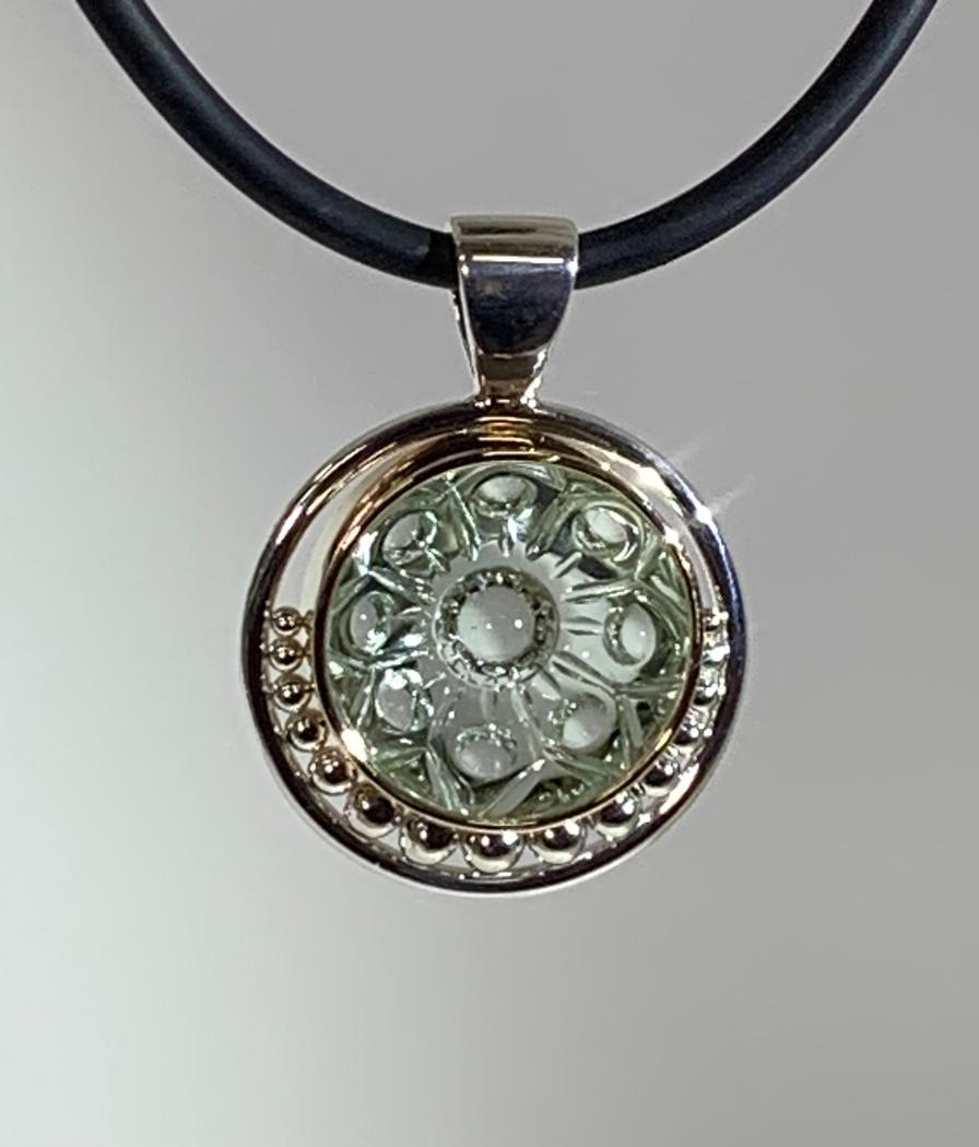 This very stunning lemon quartz pendant is very unique and a true one of a kind, The stone has been set in 14kt yellow gold that also has the design of the beads and also is set in sterling silver.