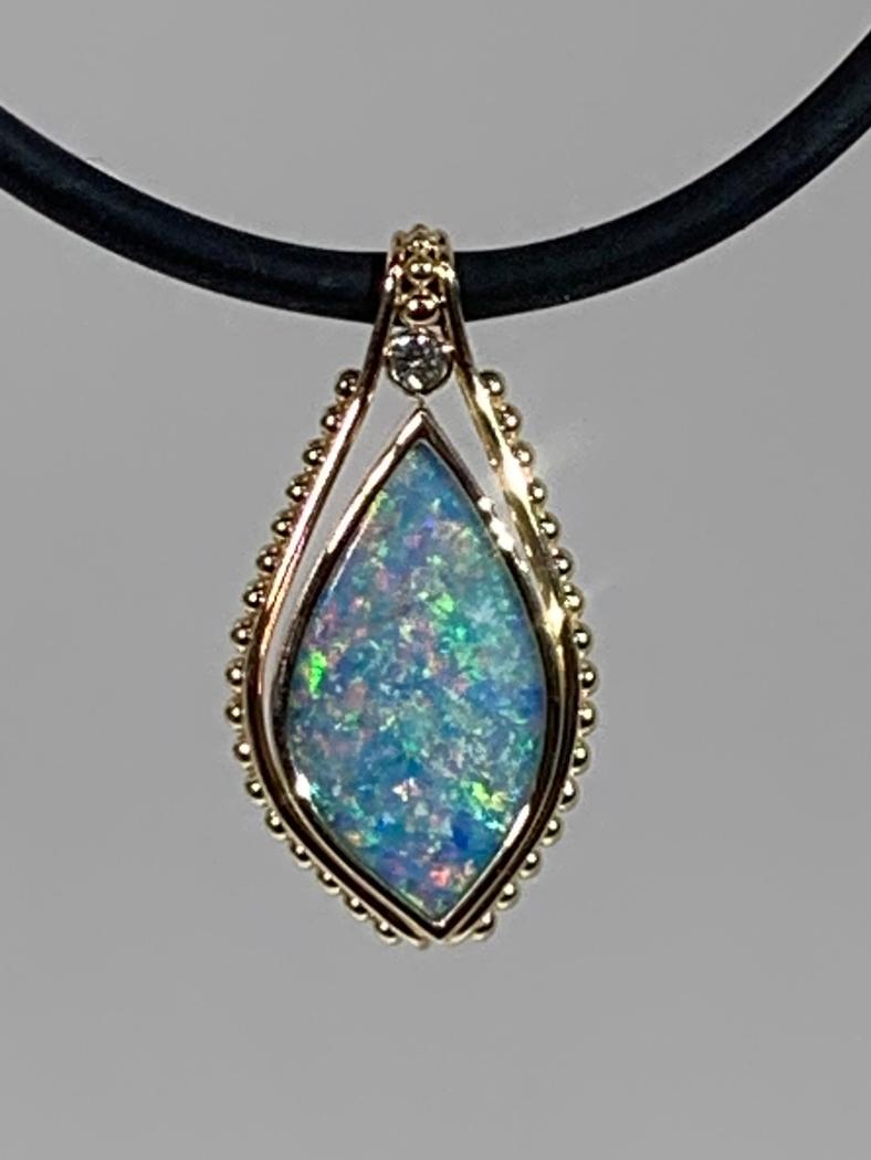 14kt Yellow Gold Australian Opal & Diamond Pendant